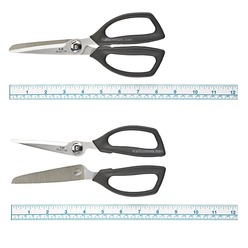 The KAI Select 100 Kitchen Shear is an ideal choice for your kitchen.  It features high carbon, stainless steel serrated blades and large, comfortable handles for easy use.  Additionally it is dishwasher safe, and since the blades separate at the pivot, they are able fit perfectly into any dishwasher's silverware basket.