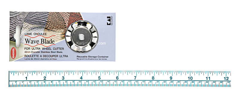 The KAI 5045wbl blade is a 45mm wave blade that is compatible with any 45mm rotary cutter, including those from our KAI rotary cutter collection: the 5045 Rotary Cutter, the RX45 Rotary Cutter, and the RS-45 Rotary Cutter.