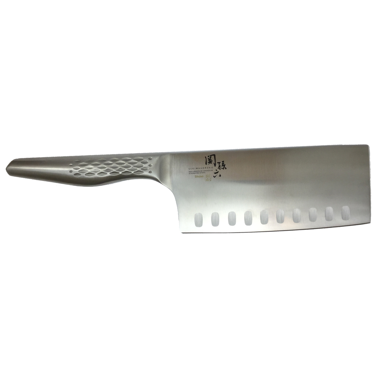 The Kai Seki Shoso Chinese knife, also known as the Chinese Cleaver, is 1 of 2 knives you will find in a traditional Chinese home.(The other being a fruit knife) The large blade is not only good for slicing and chopping, it also functions as a scraper to help move whats been cut to the pan, or it can be used as a press. Put garlic or ginger under the broad side of the blade and smash with your hand.